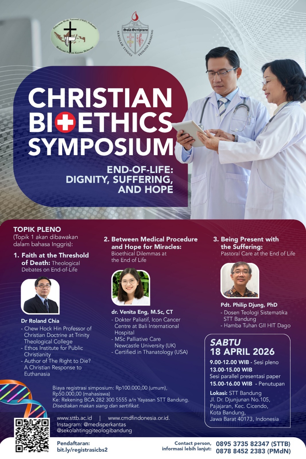 Sekolah Tinggi Teologi Bandung (STTB) berkolaborasi dengan Pelayanan Medis Nasional (PMdN) Perkantas akan mengadakan Christian Bioethics Symposium yang mengangkat isu akhir kehidupan sebagai salah satu dilema kompleks dalam dunia kesehatan modern. Forum ini membuka ruang refleksi kritis untuk membicarakan persoalan akhir hayat secara teologis, etis, dan kontekstual bukan hanya sebagai isu medis, tetapi sebagai pergumulan iman dan kemanusiaan.