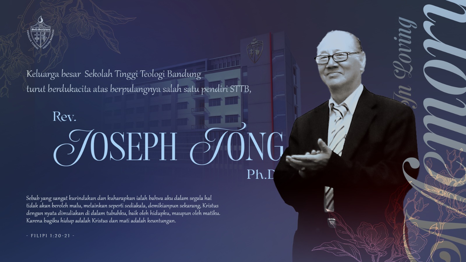 Dalam kasih mengenang Dr. Joseph Tong, pendiri Sekolah Tinggi Teologi Bandung (STTB)